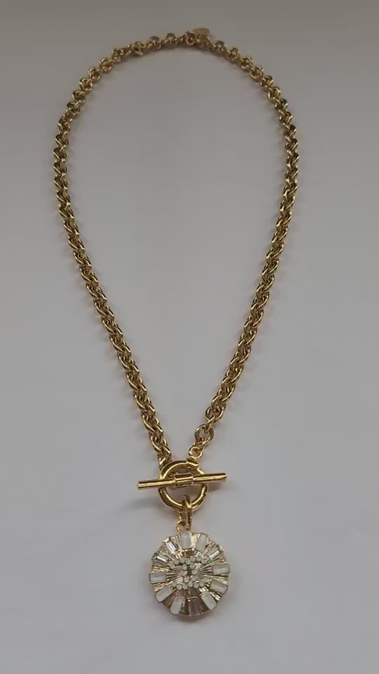 Overall chain length is approx. 45cm. Pendant approx. 18mm diameter.