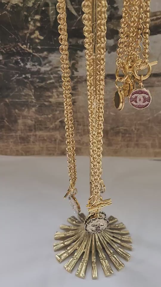 These beautiful original buttons sourced from luxury Fashion houses in France are selected or recovered from vintage clothing then artfully transformed by hand into stunning gold gilded jewellery. Repurposing at its chicest for you and the planet!