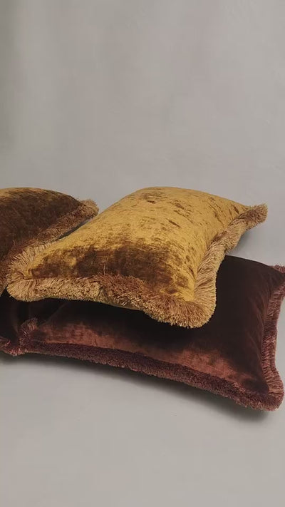 Rust Velvet Cushion with fringing