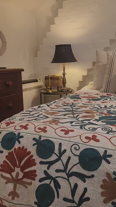 This gorgeous vintage kilim cushion in a stunning palette of ochre, blue red and dark brown, will add depth and visual texture when layered into your interiors.